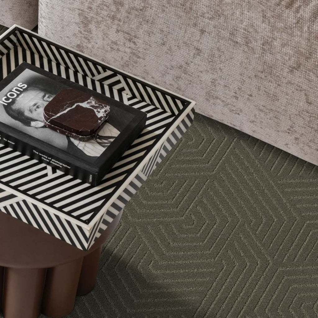 Omschrijving Ambiant Infinity Geometric Donkergroen 0901 - Vloerbedekking - Tapijt