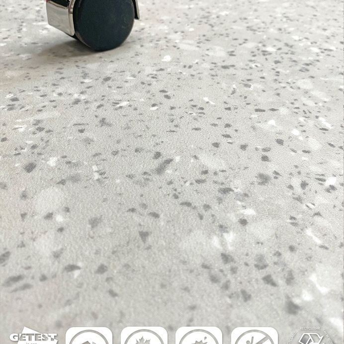 Met de introductie van deze fraaie en functionele kwaliteit krijgt de revolutionaire Dynamic Blacktex Collectie er nog meer vloerkeuze bij. Dynamic Minerals heeft de looks van homogeen PVC vinyl en de kleurkeuze creëert een enorme vrijheid in interieurstyling zowel particulier als in de moderne objectsector. De uitstraling van terrazzo-graniet met de sublieme voordelen van BTB vinyl!